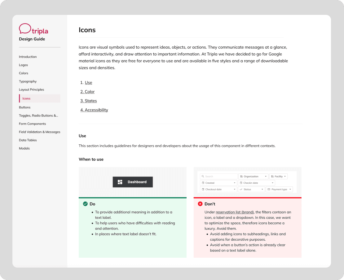Tripla’s enterprise CRM shipped new customer-requested features every sprint, driving constant page iterations and new page creation. Without design guidelines, PMs and engineers implemented these changes inconsistently, leading to a fragmented CRM experience.