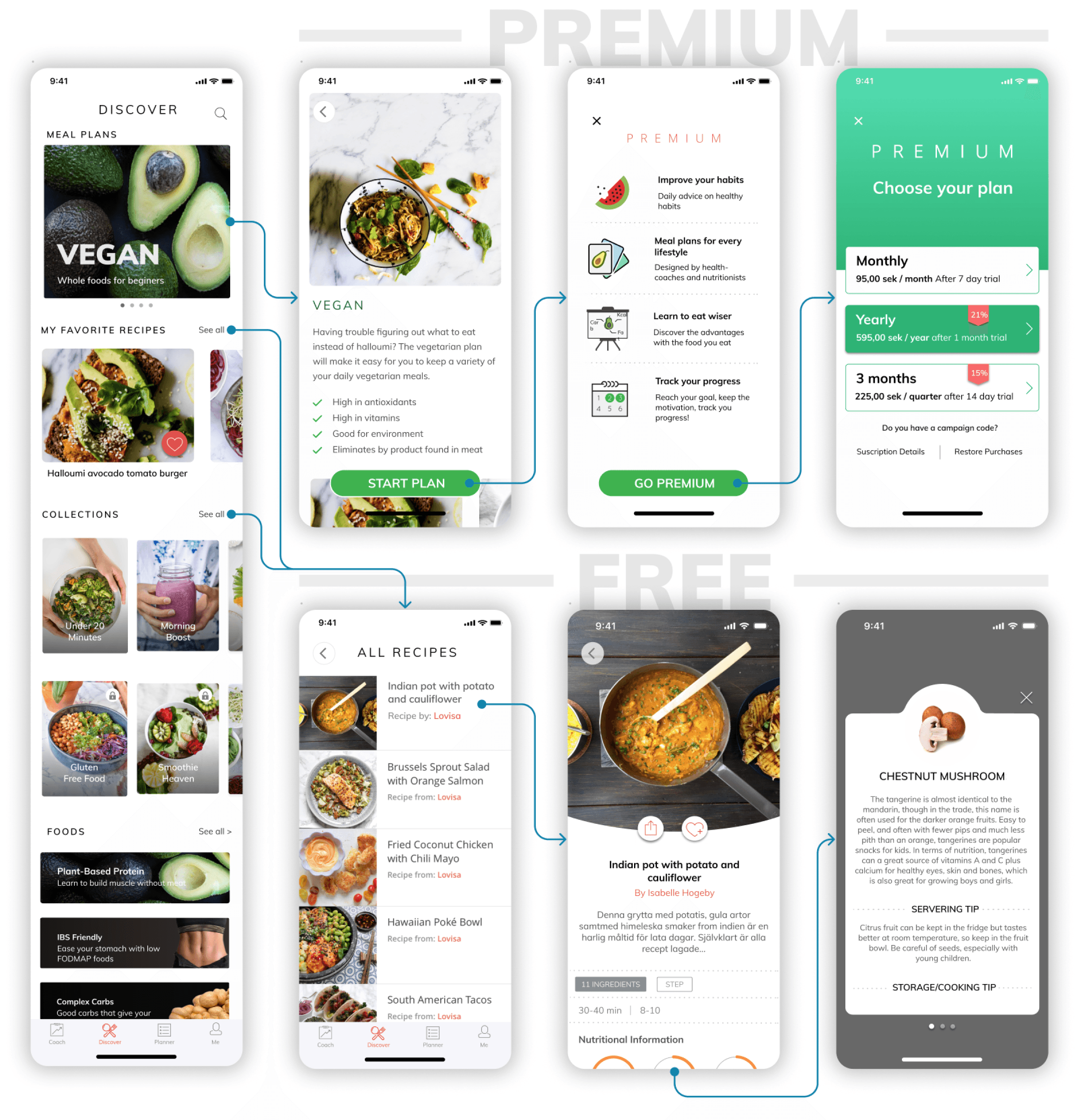 As the founders saw the current business model difficult to monetise without in-app advertising (and VC’s pressure to generate revenue), they decided to move away from targeting low budget, cheap-recipe hunters and start targeting health-conscious young professionals. With this change, the app design also needed to evolve.